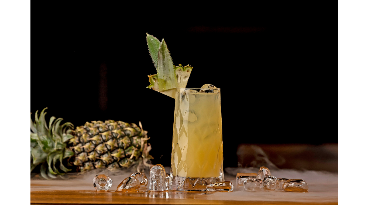 Garnish with mint and pineapple.